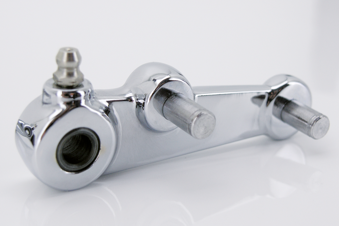 Leva cambio di ricambio all’originale Genuine Zodiac per modelli 4 marce con con parte superiore rotativa. Cromata e fornita completa di ingrassatori (OEM 25715-47) e perni (OEM 215) installati.