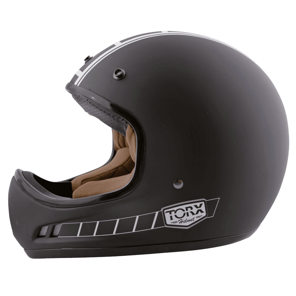Caschii ispirati al motocross approvati E. Le caratteristiche includono un classico striscia in stile racing in bianco e nero bloccato, una visiera parasole rimovibile e un paradenti ventilato.