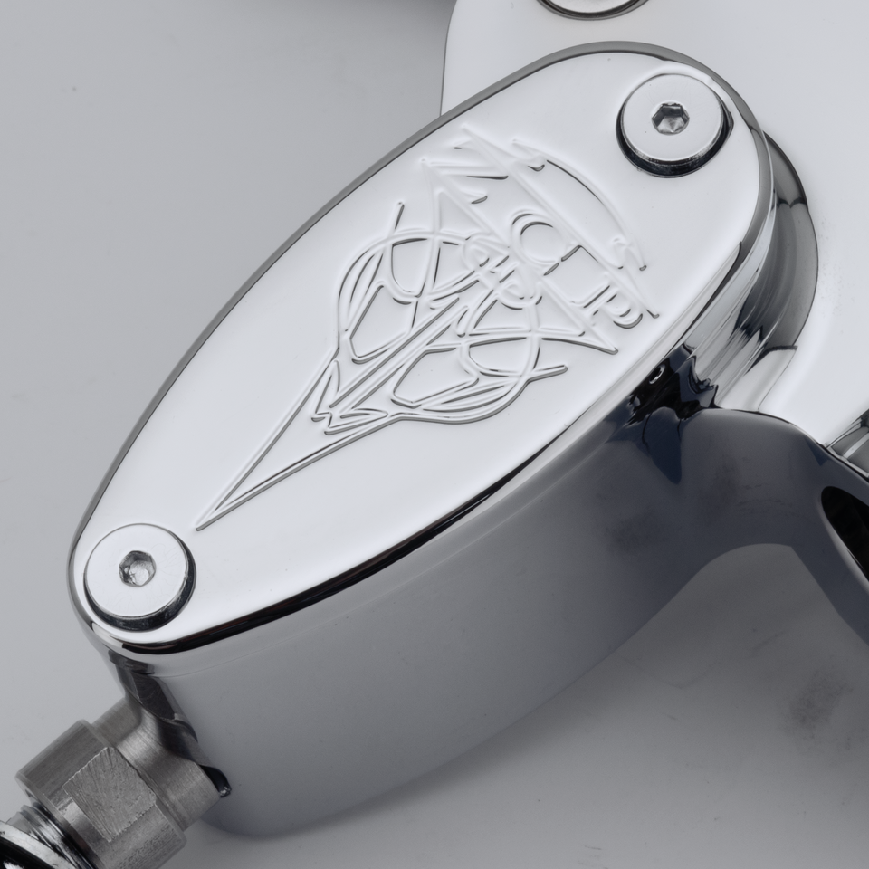 Non solo un altro prodotto custom, ma un set di comandi manubrio di alta qualità che può competere sul mercato. Ce ne sono altri in circolazione, ma nessuno della stessa qualità ad un prezzo abbordabile. In alluminio billet lavorati a CNC con un disegno tribale inciso sul coperchio della pompa freno, questi comandi sono il meglio per qualsiasi moto custom. I kit sono forniti completi con pompa freno, leva frizione o pompa frizione idraulica e pulsantini. Le pompe freno hanno un alesaggio di 5/8″, una misura che va bene per molte applicazioni con disco singolo o doppio. La pompa frizione è da 9/16″ una misura che lavora bene con molti attuatori frizione idraulica. I kit sono disponibili lucidati, neri o cromati.