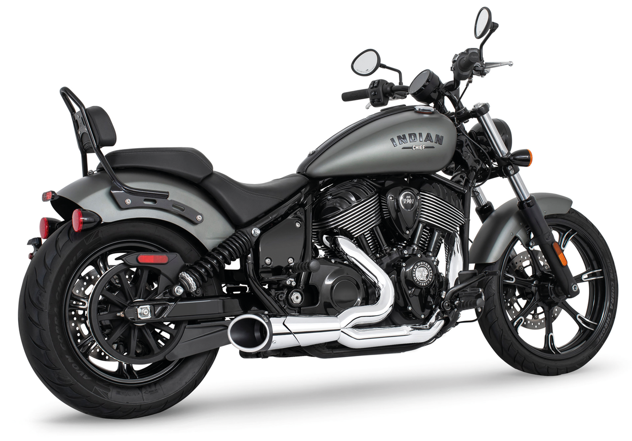 Per Indian Chief Bobber, Chief Classic, Chief Dark Horse, Chief Standard, Chief Vintage e Super Chief dal 2022 a oggi, Combat Shorty 2-in-1 cromato con tappo finale Slash Cut scolpito nero