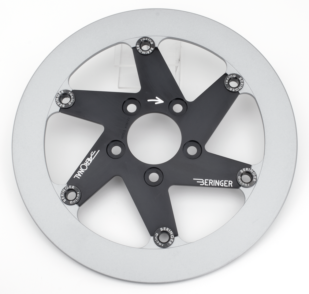 I dischi Beringer usano una fusione di ghisa grigia, materiale universalmente conosciuto per dare le più alte prestazioni sia nell’uso stradale che sportivo. La superficie in ghisa della parte frenante è ricoperta di plasma d’alluminio per prevenire la corrosione e permettere l’uso di pastiglie freno sinterizzate. La potenza frenante aumenta del 40% e l’usura si riduce la minimo. I dischi Beringer’s “Aeronal” sono progettati per applicazioni performanti. Hanno la parte frenante più stretta per ridurre il peso e la parte interna in alluminio aeronautico lavorata a CNC. Le due parti sono unite con 6 nottolini anzichè 12 come nei dischi Classic; questo riduce il peso e l’effetto giroscopico aumentando la manovrabilità della moto. La parte interna è disponibile lucidata, anodizzata nera e cromata. Si raccomanda vivamente l’uso di pastiglie sinterizzate o per prestazioni ancora superiori, pinze freno Beringer. Non compatibili con pinze freno OEM.