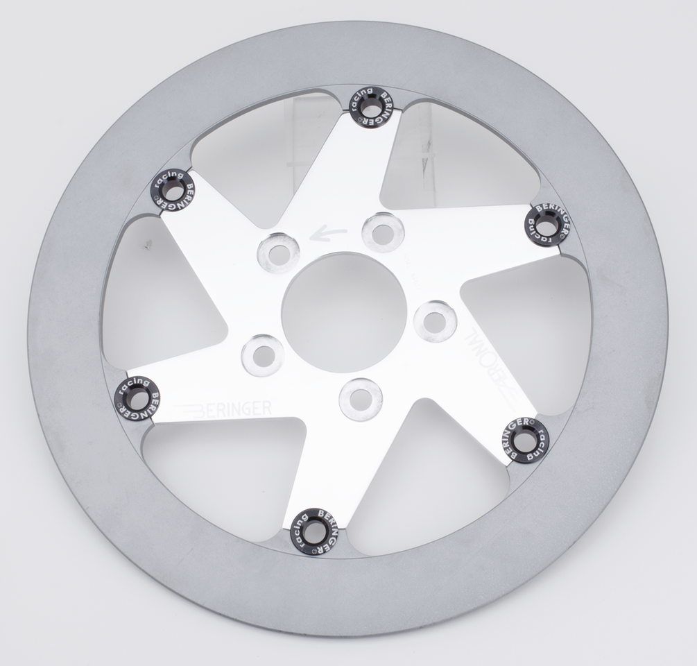 I dischi Beringer usano una fusione di ghisa grigia, materiale universalmente conosciuto per dare le più alte prestazioni sia nell’uso stradale che sportivo. La superficie in ghisa della parte frenante è ricoperta di plasma d’alluminio per prevenire la corrosione e permettere l’uso di pastiglie freno sinterizzate. La potenza frenante aumenta del 40% e l’usura si riduce la minimo. I dischi Beringer’s “Aeronal” sono progettati per applicazioni performanti. Hanno la parte frenante più stretta per ridurre il peso e la parte interna in alluminio aeronautico lavorata a CNC. Le due parti sono unite con 6 nottolini anzichè 12 come nei dischi Classic; questo riduce il peso e l’effetto giroscopico aumentando la manovrabilità della moto. La parte interna è disponibile lucidata, anodizzata nera e cromata. Si raccomanda vivamente l’uso di pastiglie sinterizzate o per prestazioni ancora superiori, pinze freno Beringer. Non compatibili con pinze freno OEM.