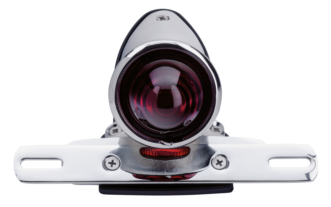 Riproduzione in stile Bobber dei fanali posteriori Crocker degli anni ’40. Le fusioni hanno le stesse imperfezioni di quei tempi. Le luci includono attacco targa, lente in vetro rosso, guarnizione di montaggio e hardware. Solo fanale posteriore, non ha luce di stop o illuminazione targa.