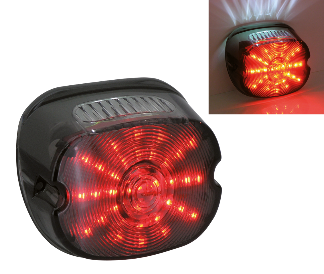 Fanali posteriori custom a basso profilo, il 33% più bassi di quelli originali. Hanno le luce posteriore, stop e illuminazione targa con brillanti LED. Questi fanali sono molto semplici da installare su tutti i modelli dal 1999 a oggi eccetto FXSTD “Deuce” e V-Rod. Disponibili con lenti trasparenti, rosse o fumè, tutte con approvazione “E”.