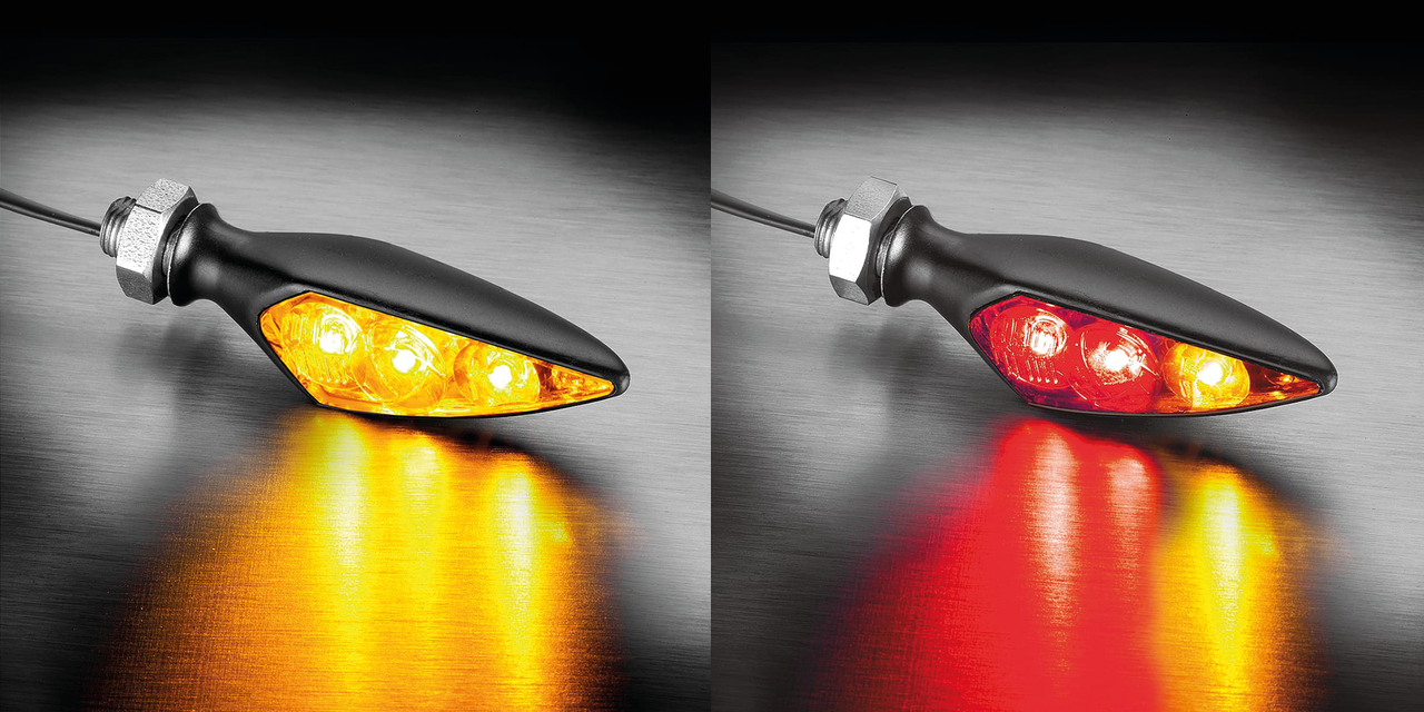 Le frecce Rhombus sono impermeabili, con luci a LED ed hanno un circuito di protezione elettronica. Sono approvate EU per uso anteriore o posteriore. Le luci Rhombus Extreme sono approvate dall’UE per l’uso su quad, auto e rimorchi, nonché per le moto, anche montate a una distanza di soli 2 cm dal faro! Esiste anche una versione “Stealth” con alloggiamento nero e lente scura come la notte ma super luminosa quando è in funzione. L’installazione delle frecce a LED richiede, ad esclusione di modelli con sistema CAN-Bus, l’uso di un’unità di lampeggio come ZPN237304 oppure due resistenze Kellermann in linea ZPN742046 per mantenere la frequenza di lampeggio originale. Le resistenze, così come le frecce, sono vendute singolarmente.