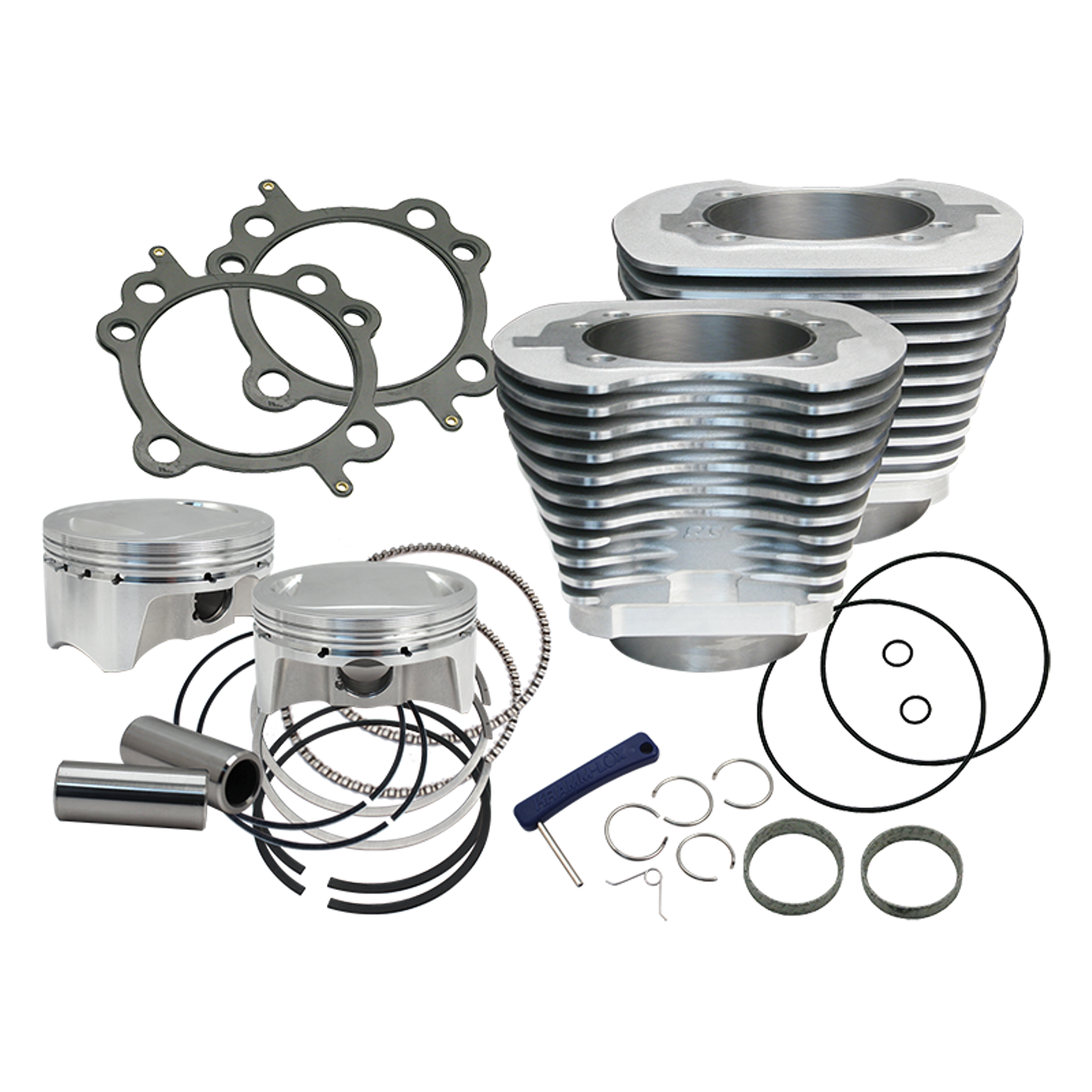 Kits 98CI (1606CC) per Twin Cam 1999-2006I kit sono forniti completi di pistoni forgiati con cupola da 10CC che danno una compressione finale di 10.3:1 con le testate di serie, Kit pistoni e cilindri argento