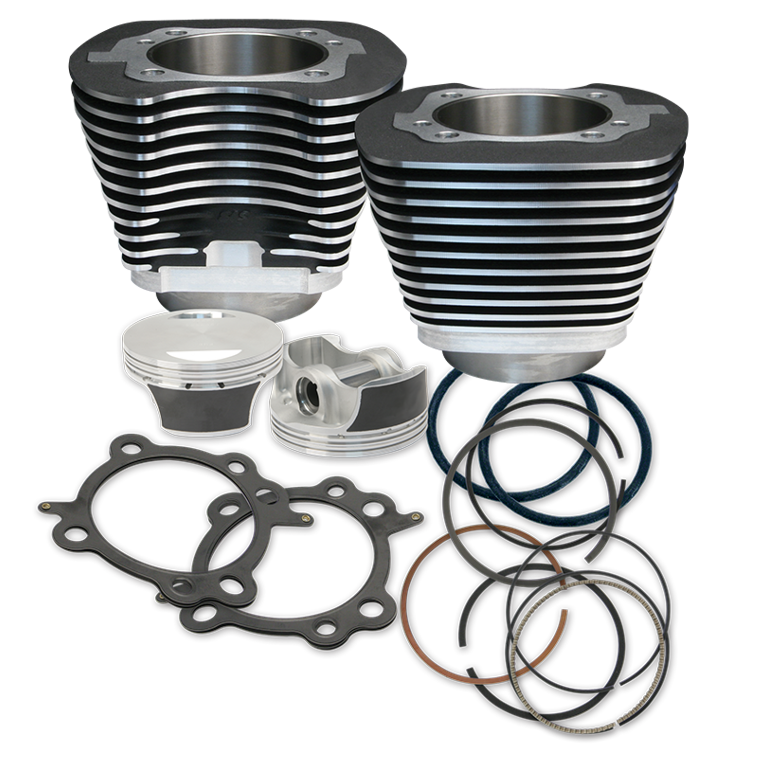 Kit 106CI (1737CC) per Twin Cam 2007-2017I kit sono forniti completi di pistoni forgiati con cupola da 3CC che danno una compressione finale di 10:1 con le testate di serie, Kit pistoni e cilindri neri