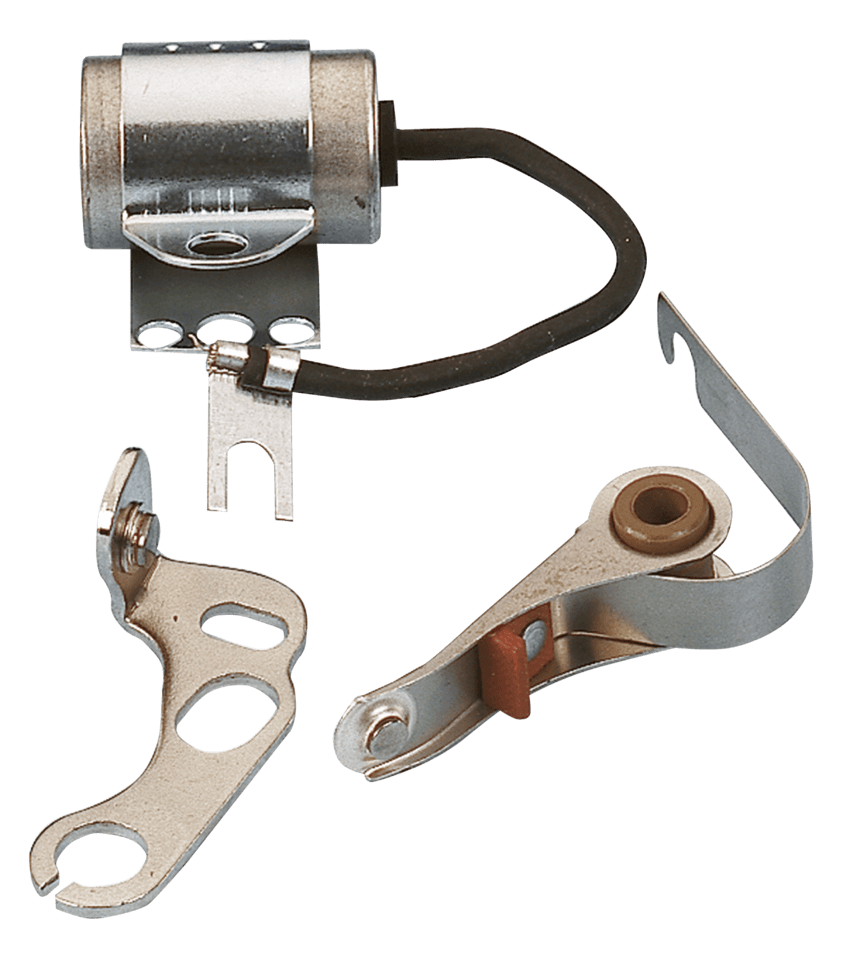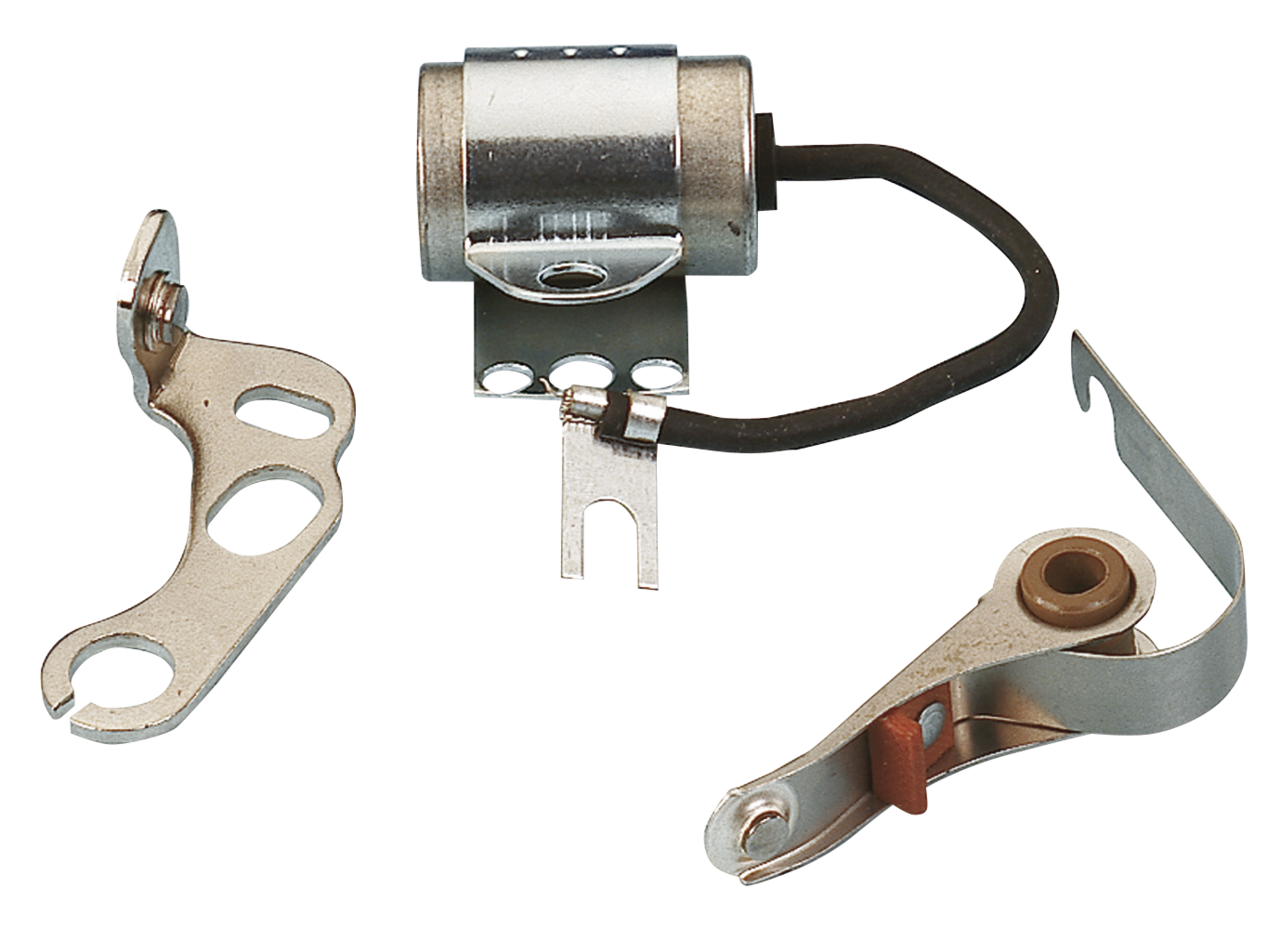 Kit disponibili per modelli 1948-1978 (eccetto magneto) e comprendono contatti accoppiati con molla da 32oz, condensatore con isolamento in mylar ed una confezione di lubrificante per la camma delle puntine. Migliori materiali sono stati adoperati per garantire partenze più facili, minimo più regolare, risposta più brillante all’acceleratore e migliori prestazioni regimi.
