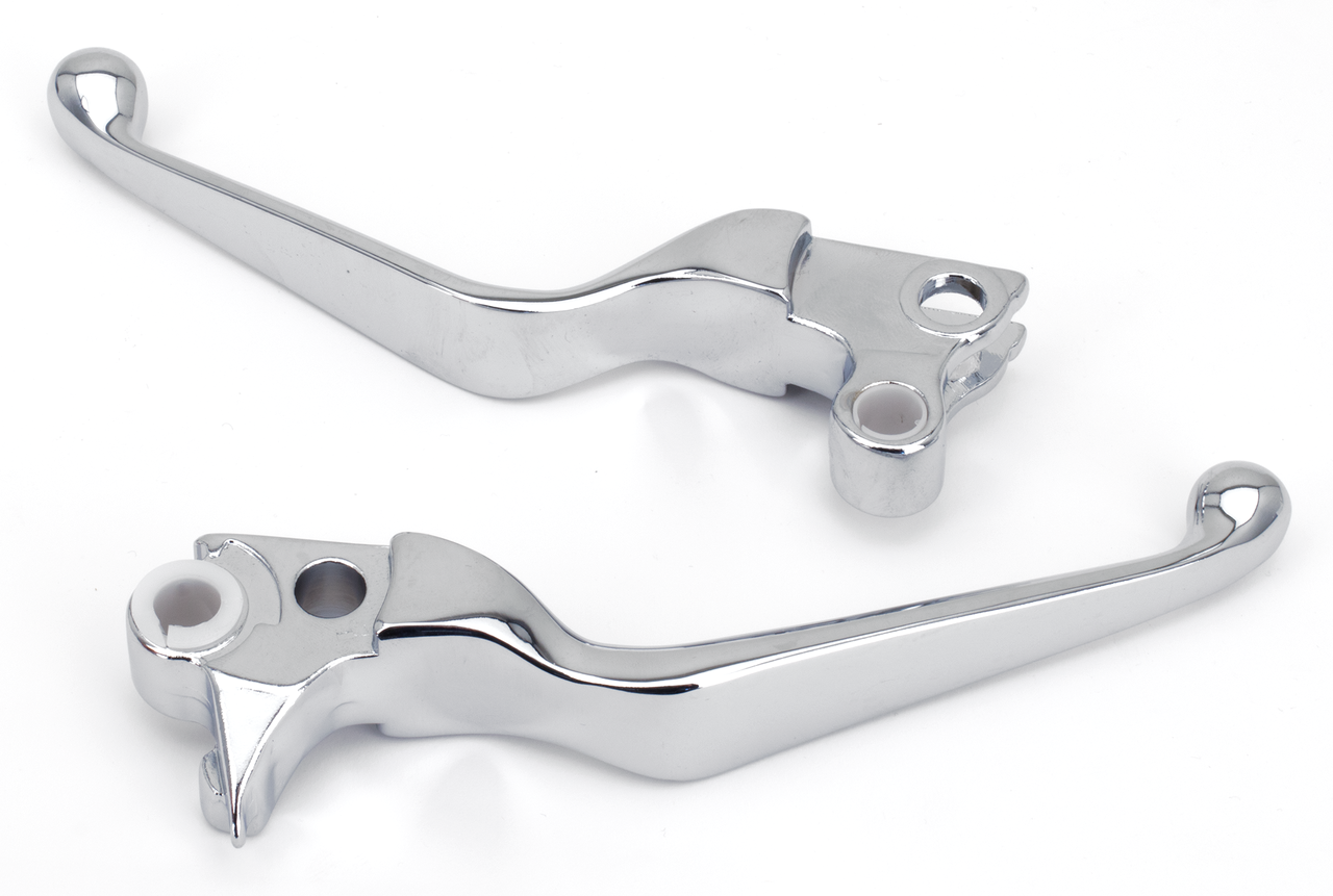 Per Sportster 1996-2003, Softail 1996-2003, Dyna 1996-2003 & Touring 1996-2003Non monta sui modelli Police, Set leve freno e frizione, cromate (OEM 45075-07)