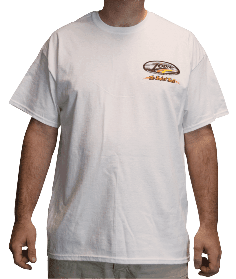 Portate la Naked Truth sulla vostra schiena con una di queste magliette di alta qualità. Disegno in stile anni 70 con logo Zodiac retrò e lo Sportster rigido Naked Truth sulla schiena e logo Zodiac 21mo secolo sul davanti. Misure US!