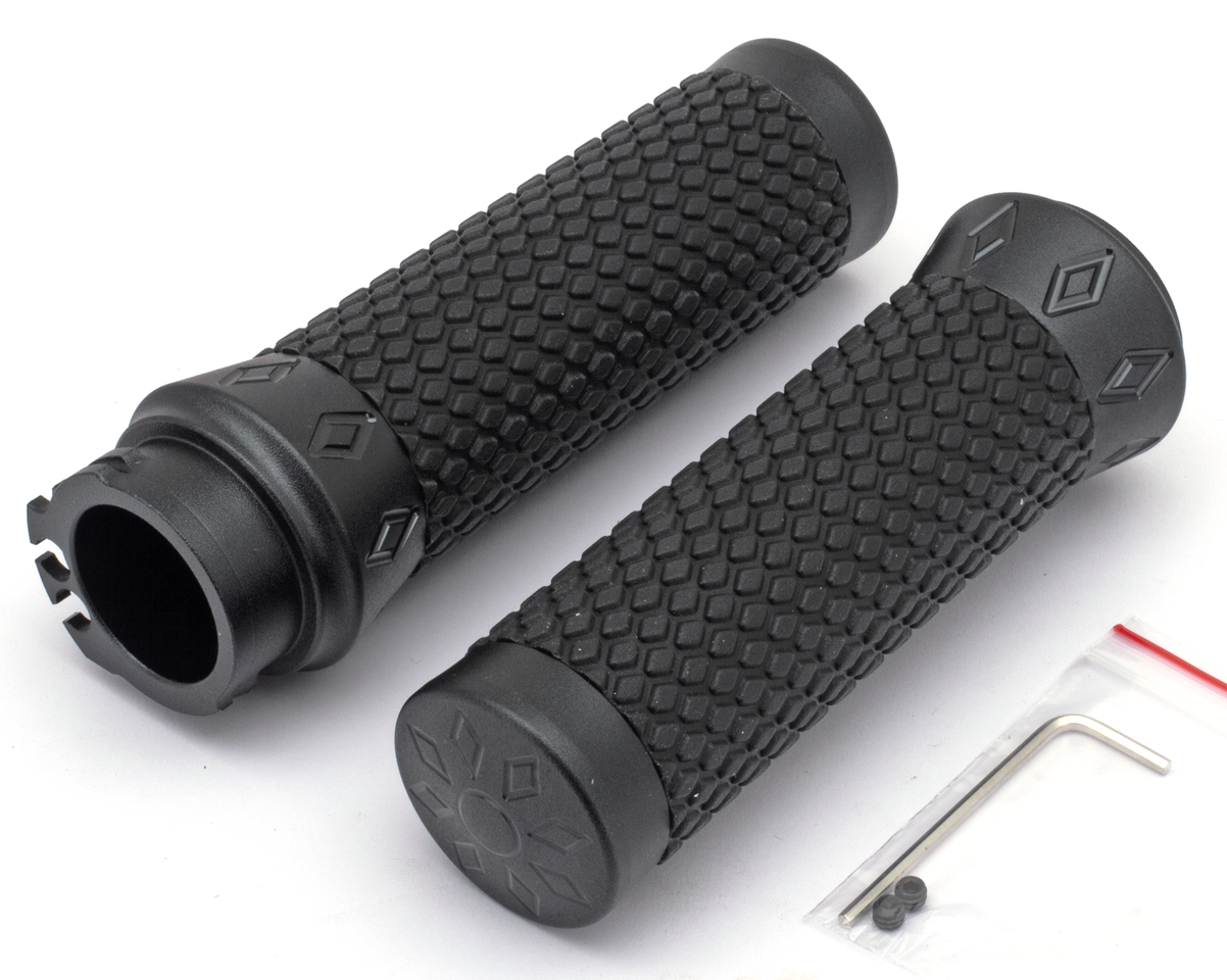 Queste monopole con a tema il diamante sono ricavate da alluminio billet con una bellissima finitura. Hanno una copertura in gomma con pattern a diamante e sono disponibili con doppio cavo acceleratore 1984 a oggi  o per modelli con acceleratore elettronico come Touring 2008 a oggi, Softail 2011-2024 e Dyna Low Rider S  2016-2017.