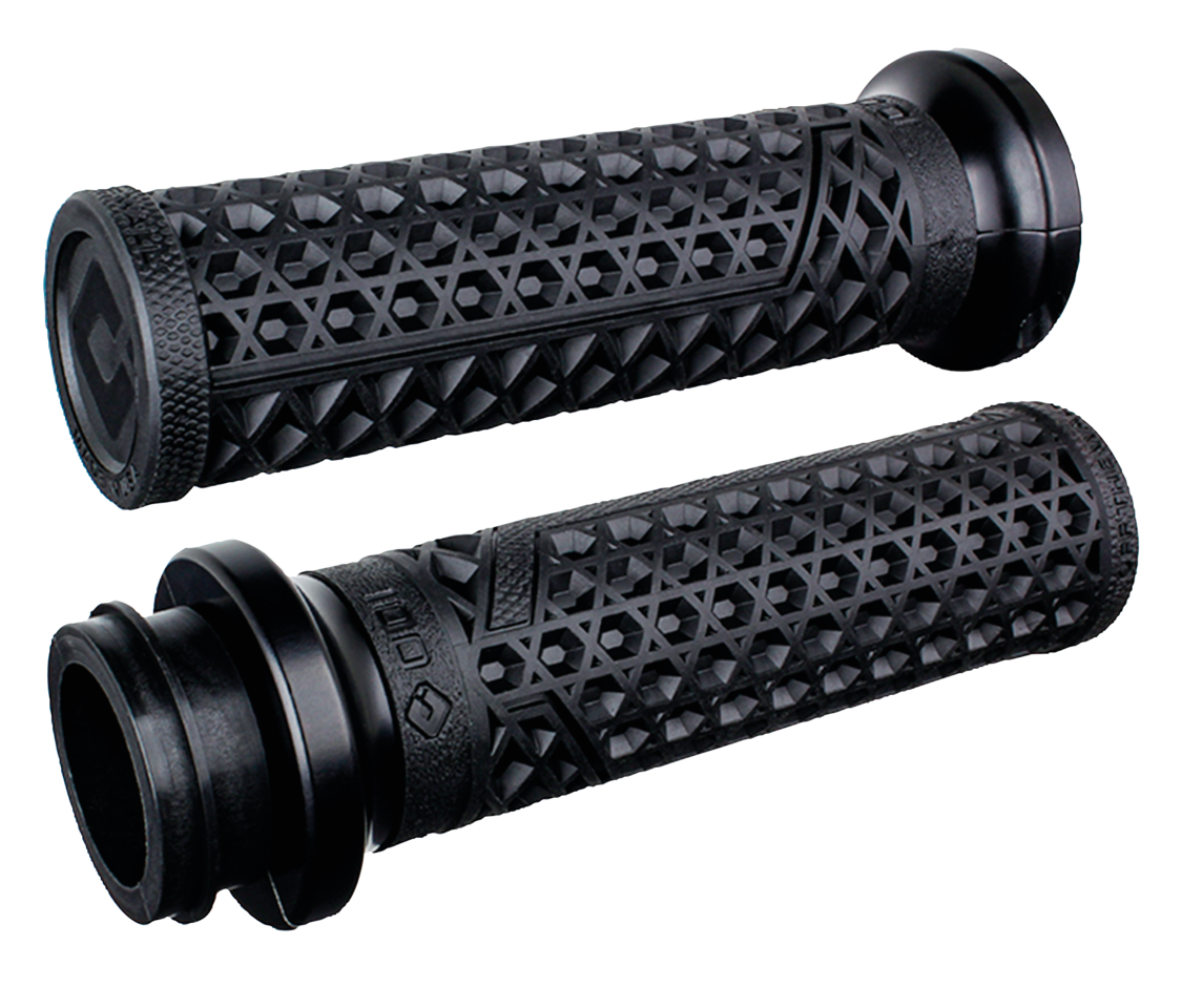 Manopole in gomma con la classica suola waffle Vans e una sezione centrale a cupola per migliorare il comfort e smorzare le vibrazioni. Queste manopole sono state combinate con la tecnologia ODI Lock-On per fornire il sistema di montaggio più sicuro, consentendo al contempo una facile installazione e rimozione. Il morsetto lato frizione in alluminio billet garantisce una sicurezza al 100% senza slittamenti. Realizzate con un tubo dell’acceleratore sagomato specifico per il vostro modello.
