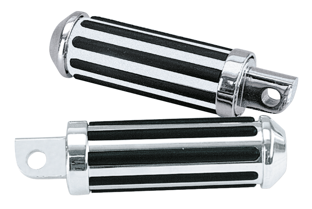 Le pedane Streamliner, note anche come poggiapiedi, sono caratterizzate da uno spesso pezzo unico in gomma per assorbire le vibrazioni e sono coperte da un rivestimento cromato per aggiungere un tocco di classe alla vostra moto. Queste pedane originali Zodiac sono più resistenti della maggior parte delle pedane di pari aspetto presenti sul mercato. È disponibile anche un pedale di avviamento in stile coordinato.