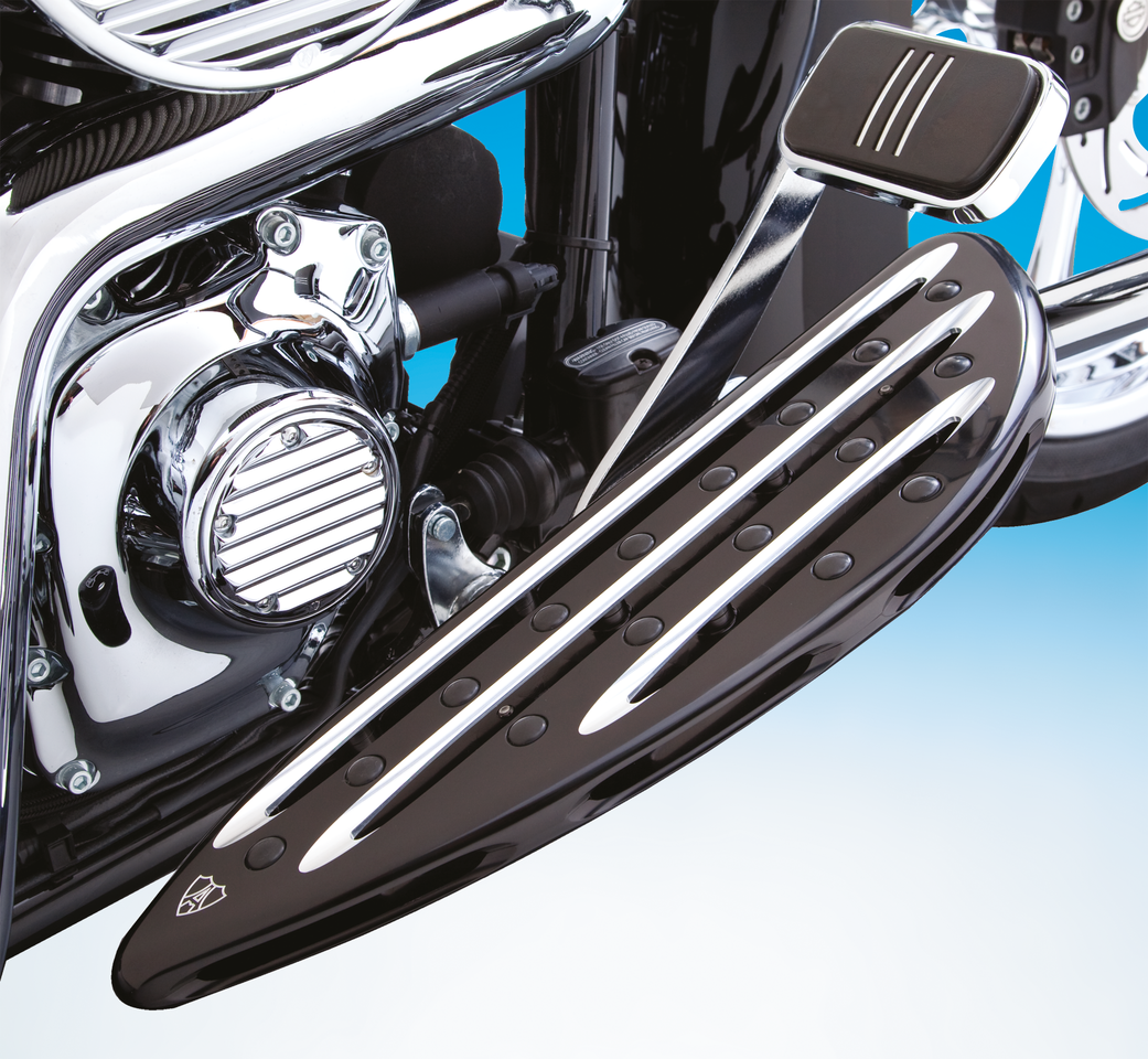 Lavorate da due pezzi di alluminio billet per creare l’effetto finestra. Un nuovo modo per aggiungere stile e comfort alla vostra moto. Le pedane del guidatore sono lunghe 18″ (46cm), larghe 5 3/4″ (15cm) e spesse 1″ (2.5cm) e si montano direttamente usando la bulloneria originale. Le pedane del passeggero sono lunghe 7″ (18cm), larghe 4″ (10cm) e spesse 1″ (2.5cm).