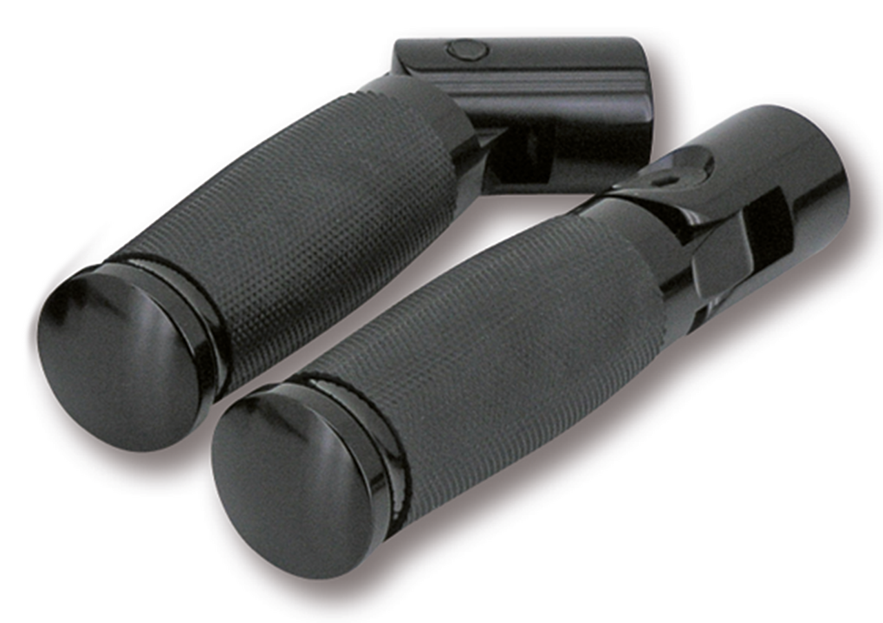 Le pedane guidatore e passeggero sono in alluminio billet laVorate a CNC con finitura cromata. Hanno degli inserti in gomma antiscivolo a forma di stella, croce o scacchi. Vendute in coppia. Hanno una lunghezza totale di 6″ (15.3 cm) e 1 3/8″ (3.5 cm) di diametro. Le pedane guidatore hanno il filetto da 3/8″‑16UNC mentre quelle passeggero lo hanno da 1/2″‑13UNC. Potrete trovare dei set di manopole abbinabili in questo catalogo nel capitolo 14.