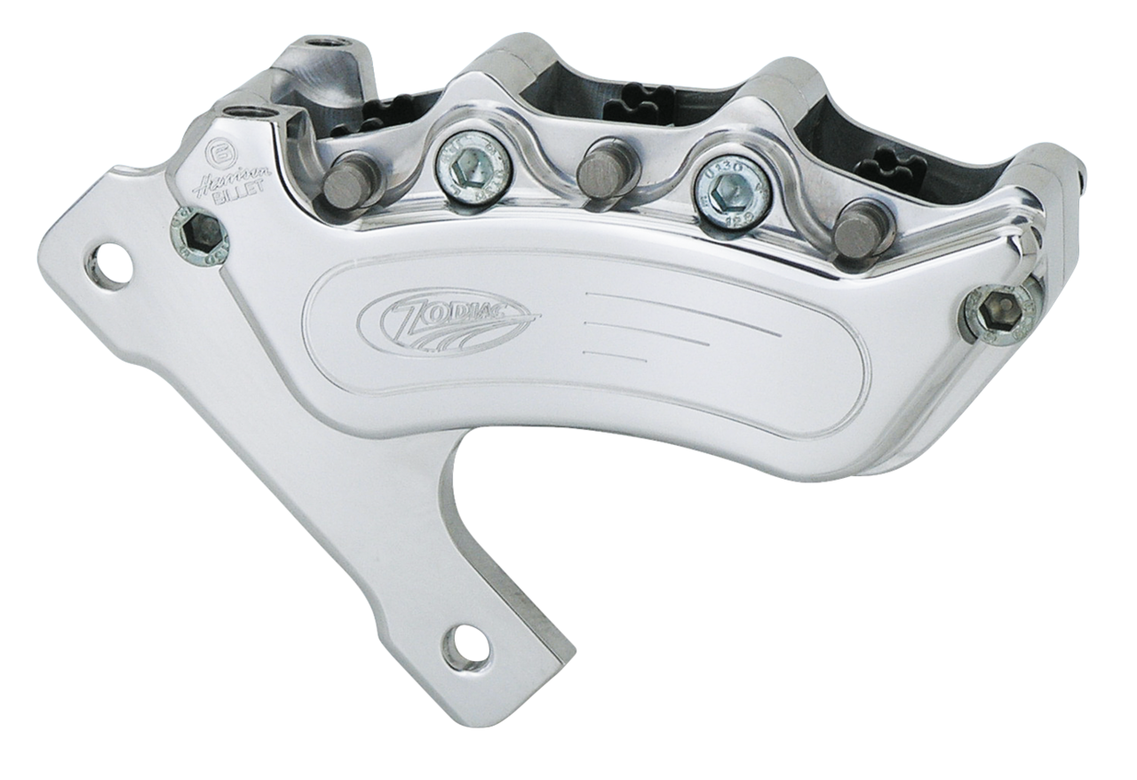 La Harrison Engineering, è stata una delle prime compagnie a progettare e sviluppare pinze freno aftermarket a più pistoni per Harley-Davidson. Ogni pinza a doppia azione a 4 o 6 pistoni, è lavorata con precisione a CNC da blocchi in lega d’alluminio aeronautico. Per restringere le tolleranze al minimo, i pistoncini sono lavorati da una speciale lega d’alluminio a bassa espansione, ed hanno una finitura anodizzata dura che conferisce loro la stessa durezza dell’acciaio cementato garantendone la massima resistenza all’usura. Per un’efficace performance le pinze hanno pastiglie freno separate per ogni pistoncino. Harrison sostiene che in questo modo, si migliora la frenata rispetto alle pinze con le pastiglie in doppio o alle pinze con i pistoni con diametro differenziato. C’è anche uno speciale beneficio in condizioni di bagnato, perché la prima serie di pastiglie spazza via l’acqua dal disco, mentre le seguenti 2 o 4 pastiglie lo stanno ancora “mordendo”. In questo modo si rimuove l’effetto scivolamento della pinza sul disco evitando frenate brusche ed improvvise quando questo ritorna asciutto. Sono delle pinze veramente progressive con una relazione diretta e sensibile tra l’ammontare della pressione sulla leva e l’ammontare della potenza frenante. Queste pinze, non solo sono bellissime, ma forniscono un eccellente potere frenante e sono disponibili per quasi tutti i modelli. Le pinze anteriori si montano direttamente sui foderi delle forcelle, quelle posteriori sono vendute in set che comprendono i supporti di montaggio. In ogni kit sono compresi rasamenti per posizionare correttamente le pinze rispetto ai dischi e tutta la bulloneria di montaggio. I set anteriori e posteriori, sono disponibili nella versione da 4 e 6 pistoni con finitura lucidata o anodizzata nera. Dischi freno Harrison che si abbinano ad entrambi i modelli sono disponibili su questo catalogo. Tutte le pinze Harrison Billet sono approvate e sono fornite di garanzia a vita.