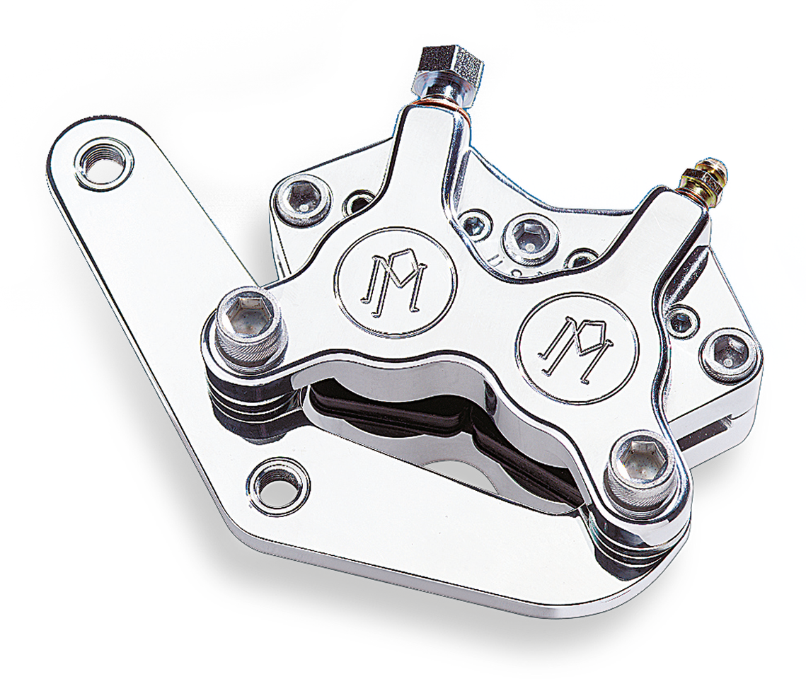 L’originale pinza PM a 4 pistoncini è ancora una delle migliori pinze sul mercato, in molti hanno cercato di imitarla ma nessuno con successo. Sii serio riguardo ai freni, non cercare le imitazioni ma solo la qualità PM. Disponibile per FXR e XLH dal 1984 ad oggi con disco singolo o doppio e ruota a raggi di serie o custom. Queste pinze lavorano con disco da 11 1/2″ di serie o aftermarket. Si può usare questa pinza per applicazioni custom solo se usata staffa autocostruita.