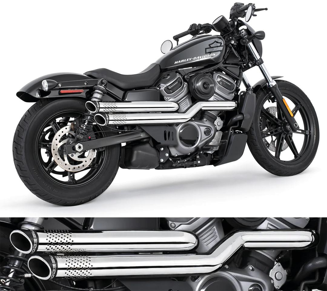 Per Nightster RH975 & RH975S dal 2022 a oggi, Sistema cromato con tappo finale Slash Cut nero scolpito
