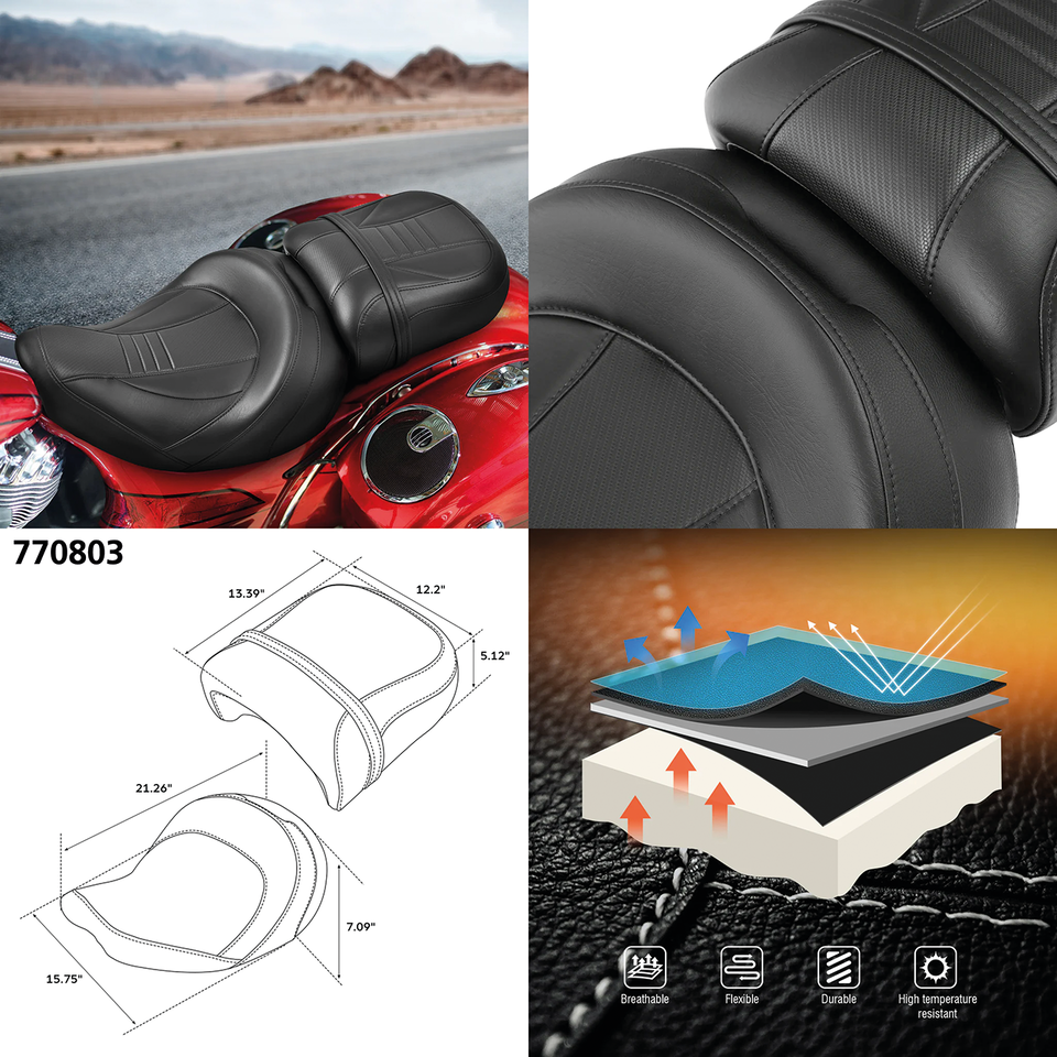 Per Indian Challenger, Chief, Chieftain, Roadmaster, Springfield e Vintage 2014 a oggi, Sella C.C. Rider 2-Up, plissettata, nera