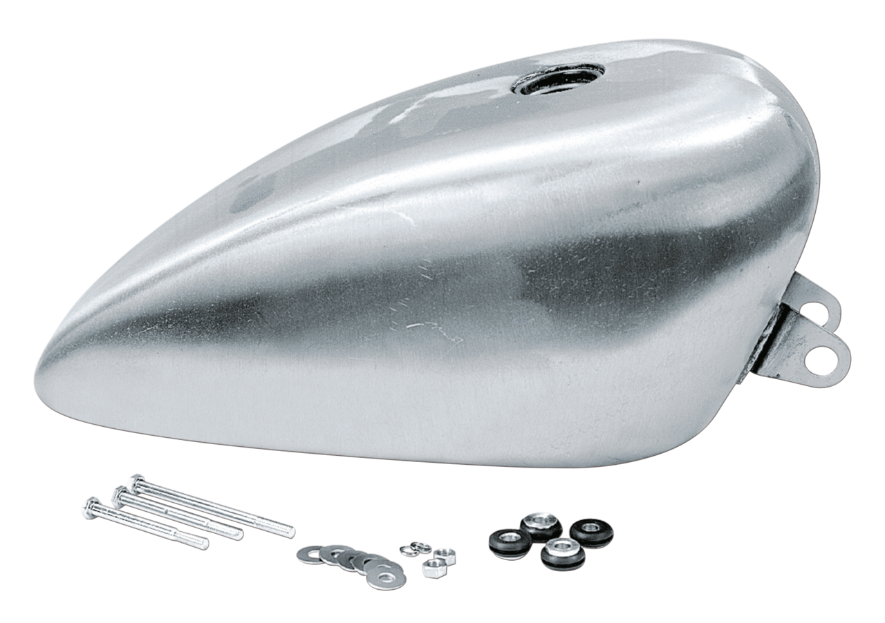 Questo serbatoio ha tutto, il classico disegno Peanut e i profili arrotondati ultimo tipo, uniti ad una maggiore capienza per percorrere più strada. La capienza è di circa 3.4 galloni (12,9L.). Perfetto per sostituzione di serbatoi danneggiati o per rimodernare vecchi modelli. Il serbatoio è completo di bulloneria di montaggio e supporti di gomma. Disponibile per l’uso con tappi OEM e aftermarket a vite. Per chi vuole qualcosa di diverso, possiamo fornire il serbatoio anche con tappo aeronautico con serratura e con i tappi pop-up nella versione verniciabile. Escluso i serbatoi per tappi a vite, i tappi sono inclusi con il serbatoio.