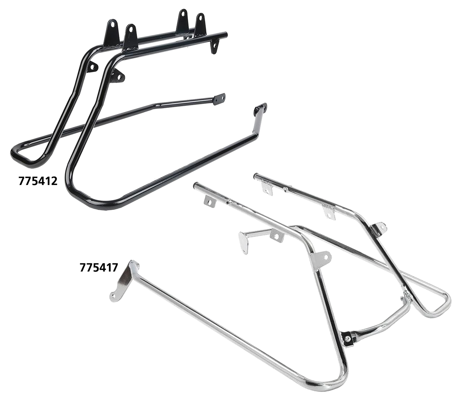 Queste staffe consentono di installare sia borse rigide che morbide di serie o aftermarket modello 1993-2013 o 2014-up progettate per i Touring. Le staffe sono dotate di attacchi Dzus per l’utilizzo dei dispositivi di fissaggio di serie a 1/4 di giro. Si montano sui longheroni del parafango e dietro il poggiapiedi del passeggero. Le staffe sono realizzate in un unico pezzo per facilitare l’installazione. Funzionano sia con sissy bar fissi che rimovibili.