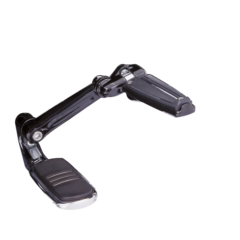 Offri al tuo passeggero la stessa libertà di movimento e il massimo comfort che hai con le tue pedane avanzate. Il tuo passeggero amerà le posizioni del piede alternative che aiutano a rendere il viaggio molto più confortevole e piacevole. Questi supporti si adattano perfettamente alle pedane passeggero o alle pedane H-D di serie e sono completamente regolabili per adattarsi all’altezza del passeggero. Forniti come coppia di supporti per sinistra e destra, le pedane non sono incluse. Per Touring e Trike 1993 a oggi.
