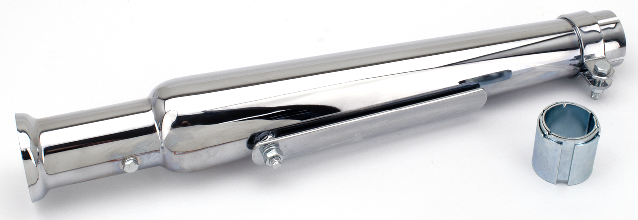 Terminali custom universali cromati. Hanno un innesto da 1 3/4″, ma con il nostro adattatore (ZPN065010) possono essere montati anche su collettori da 1 1/2″. Venduti singolarmente.