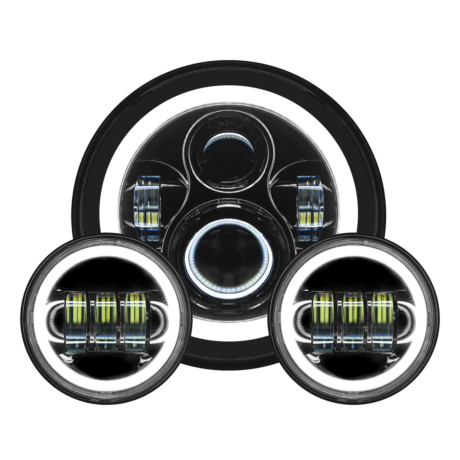 7″ BLACKOUT LED HALOMAKER WITH 4.5″ HALO PASSING LAMPS – Design e Performance HOGWORKZ per la Tua Harley