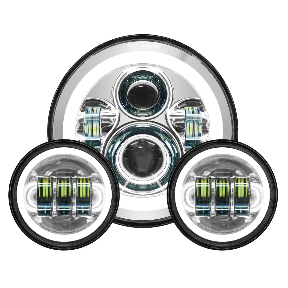 7″ CHROME LED HALOMAKER WITH 4.5″ HALO PASSING LAMPS – Design e Performance HOGWORKZ per la Tua Harley