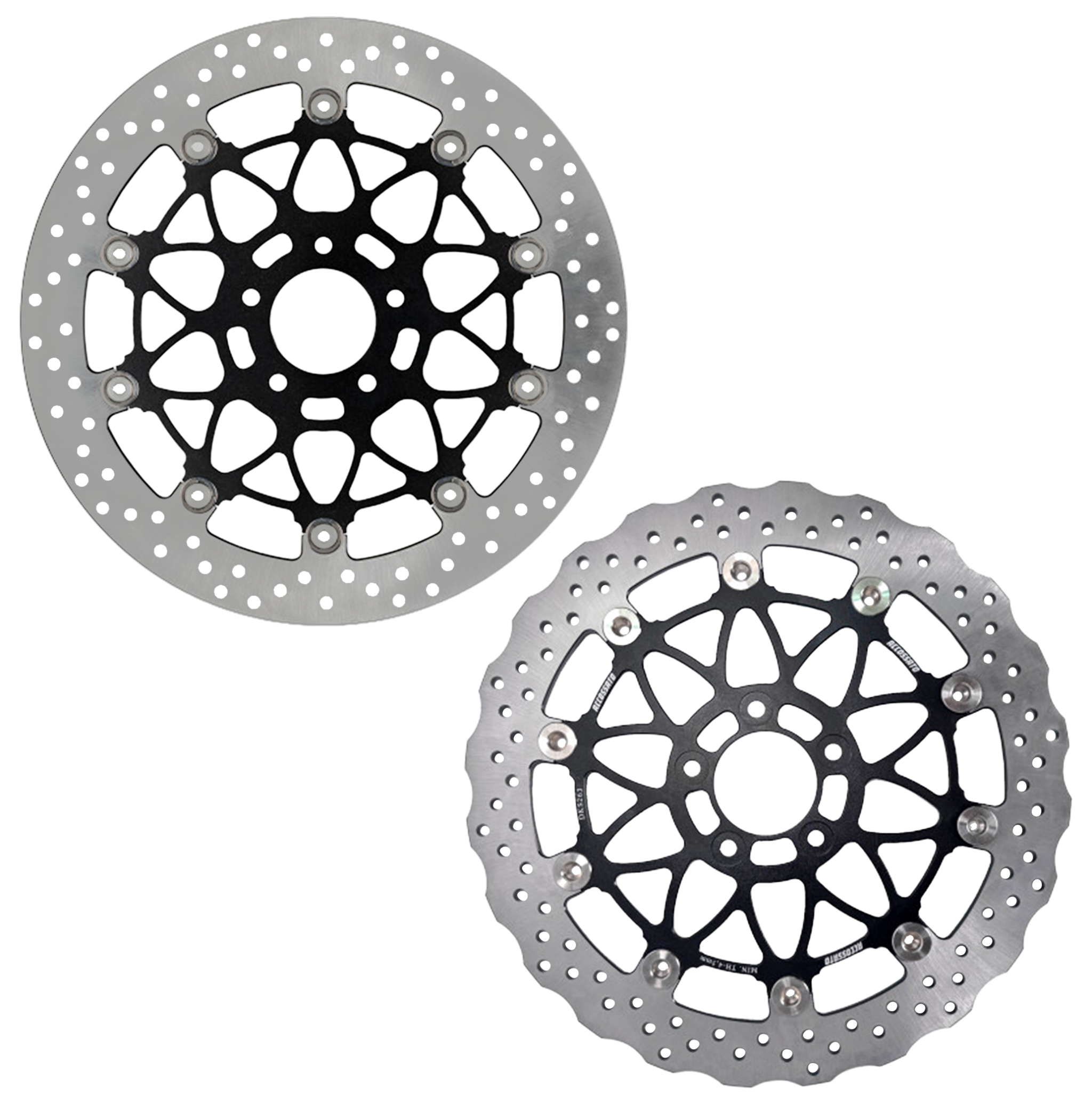 Dischi freno flottanti, progettati per offrire le massime prestazioni, sicurezza e controllo della frenata. Realizzati con materiali di alta qualità e lavorati con precisione. Disponibili nel diametro di serie per chi desidera mantenere le specifiche originali della propria moto migliorando comunque le prestazioni di frenata, grazie alla struttura flottante che ottimizza l’allineamento tra disco e pastiglie anche in condizioni di forte sollecitazione. Disponibili anche in versione con diametro maggiorato, progettati per l’uso sportivo o per i motociclisti che cercano una frenata ancora più potente e reattiva. Aumentando il diametro del disco, si ottiene una maggiore forza frenante a parità di pressione sulla leva del freno. Ciò si traduce in spazi di frenata più brevi, un miglior controllo durante le frenate brusche e una migliore dissipazione del calore. I dischi sono dotati di centro nero.