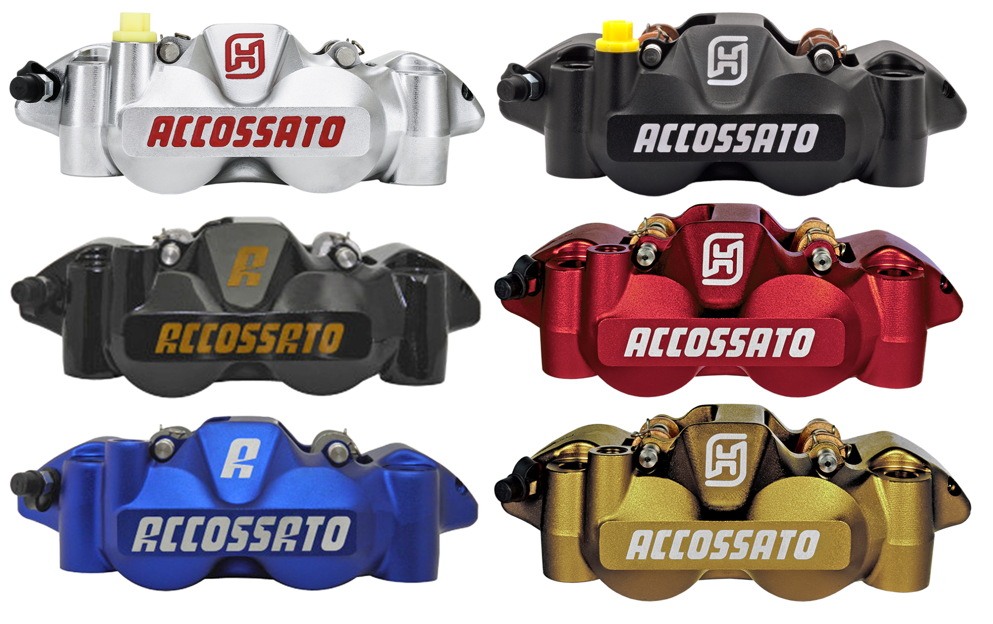 La nuova pinza freno radiale, composta da 2 pezzi e realizzata in billet, arricchisce la gamma di pinze Accossato. La pinza è progettata con la tecnologia più avanzata, utilizzando i migliori materiali presenti sul mercato. Un chiaro esempio è dato dalla struttura delle pinze, lavorate con macchine CNC a 5 assi. La forma delle pinze è stata realizzata con il supporto della ricerca CAD al fine di ottenere il peso più leggero, la migliore rigidità del corpo e la migliore capacità di dissipazione del calore attraverso uno speciale trattamento di ossidazione dura. Durante la lavorazione, il corpo della pinza è controllato al 100% dalle macchine 3-D. Le pinze hanno una distanza da centro a centro dei fori di montaggio dei bulloni di 108mm. Accossato consiglia di utilizzare liquido freni DOT 4 nelle proprie pinze. Le pinze sono fornite con pastiglie freno sinterizzate.