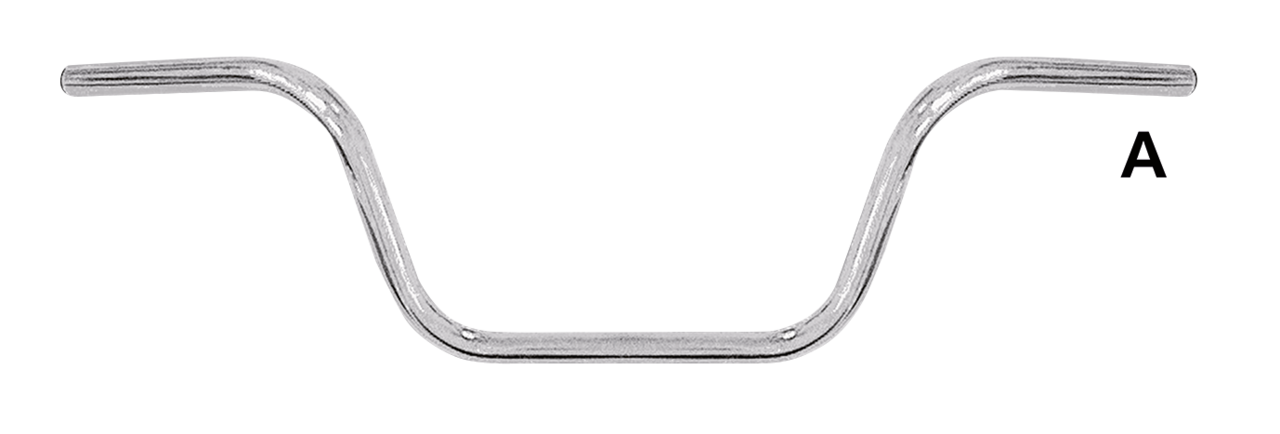 Ape Hanger altezza 8 1/2″ (22cm) B=15cm, C=86cm, D=20cm, E=32cm, F=20cm, Ape Hanger 8 1/2″, cromato, senza scanalature