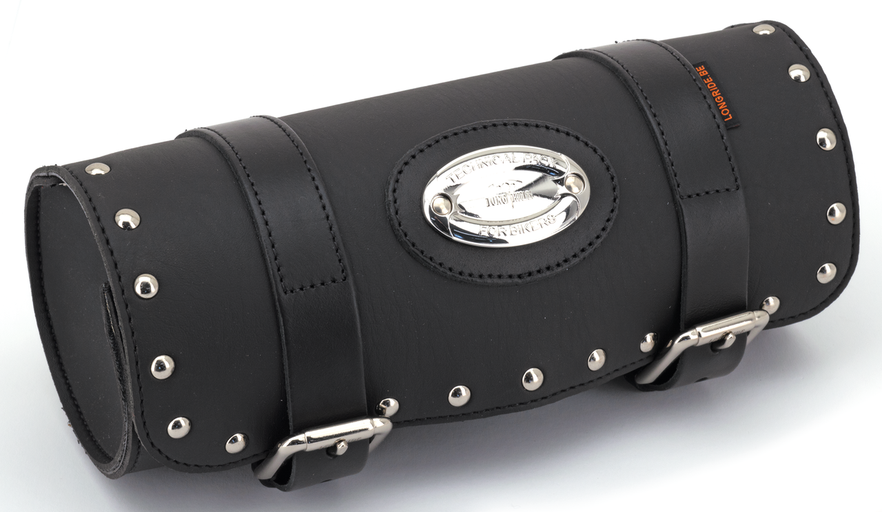 Borse per forcella costruite in robusto ed idrorepellente Iparex 1100 e rinforzate in PVC con cinghie in pelle e fibbie anti ruggine. Disponibili nere lisce o con borchie cromate.