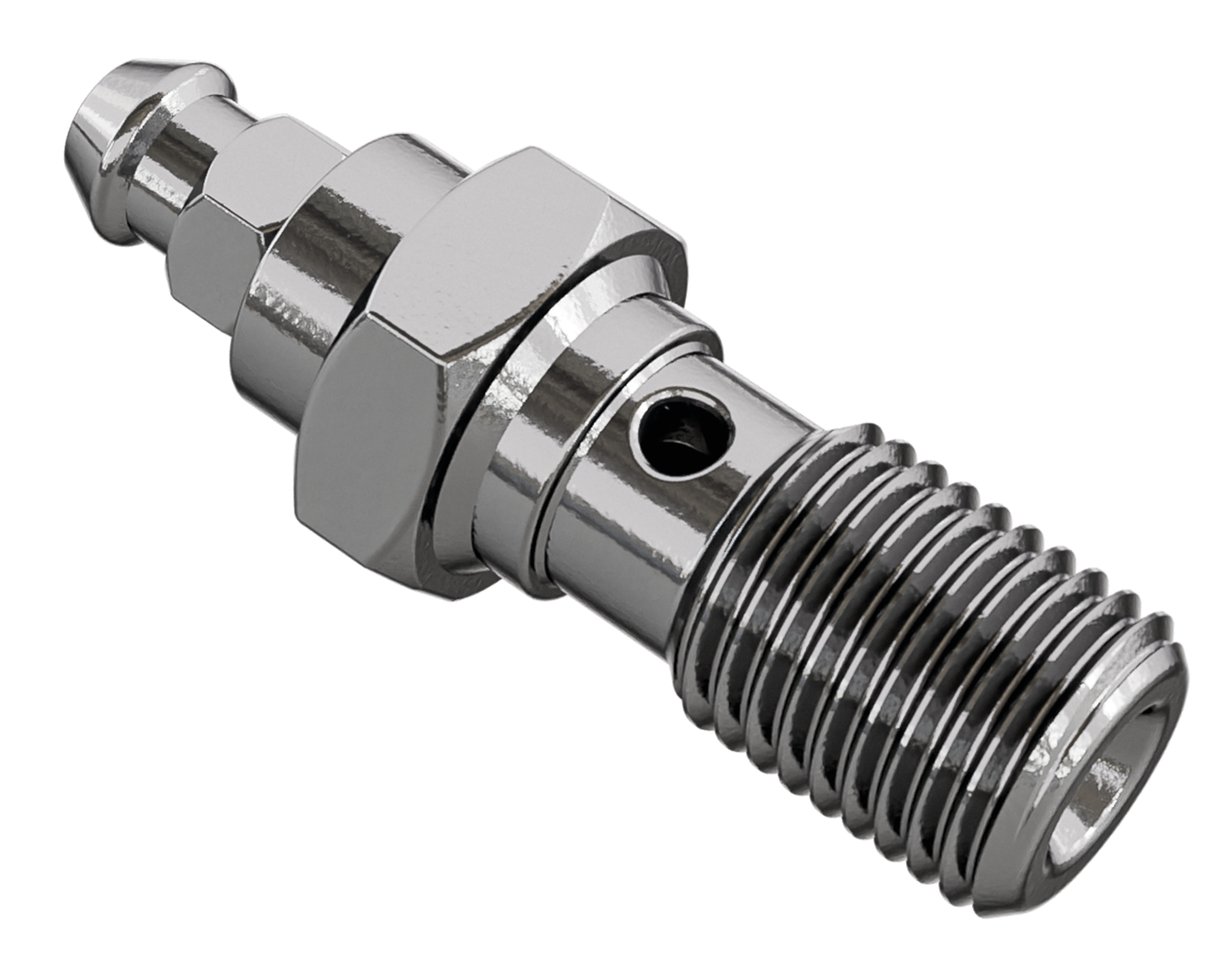 La soluzione finale per impianti frenanti “difficili da spurgare”. Questi bulloni banjo sono dotati di una valvola che ti permette di spurgare il sistema nel punto più alto o esattamente prima che il fluido entri nella pinza. I bulloni banjo sono disponibili in acciaio inox.