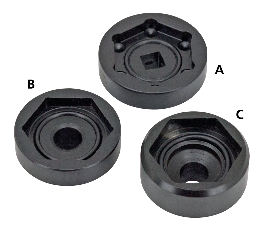 Questa bussola da 35mm con guida da 3/8″ serve per rimuovere o installare i tappi esagonali su tutte le forcelle telescopiche da 39mm o 41mm. La bussola Jims ha un rivestimento in gomma per non danneggiare i dadi, mentre quella di Colony ha installato un O-ring per lo stesso scopo. Entrambe le bussole hanno un basso profilo per essere usate con qualsiasi manubrio.