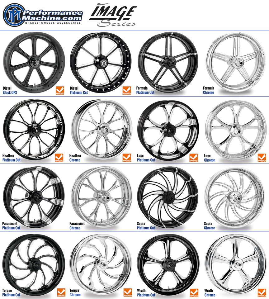 Le ruote Performance Machine sono costruite da un pezzo d’alluminio grezzo. Usando alta pressione e temperatura, il pezzo d’alluminio cambia faccia con una lavorazione tipo forgiatura. L’alluminio rimane solido attraverso tutto il processo di lavorazione della forgiatura e sagomatura della ruota. Tutta la ruota è lavorata in maniera radiale secondo l’uso per la quale è destinata, per una maggiore efficacia e robustezza. Il pezzo completamente forgiato viene poi introdotto nella lavorazione a controllo numerico per uscire successivamente in molti disegni differenti. Infine la ruota viene finita a mano per una lucidatura a specchio e una cromatura da show. Un numero limitato di disegni è disponibile anche Contrast Cut ” Patinum” dove la parte in contrasto è lucidata a specchio. Un numero molto limitato di disegni è disponibile nella finitura nera OPS, con due tonalià di nero che è un esclusiva di Performance Machine