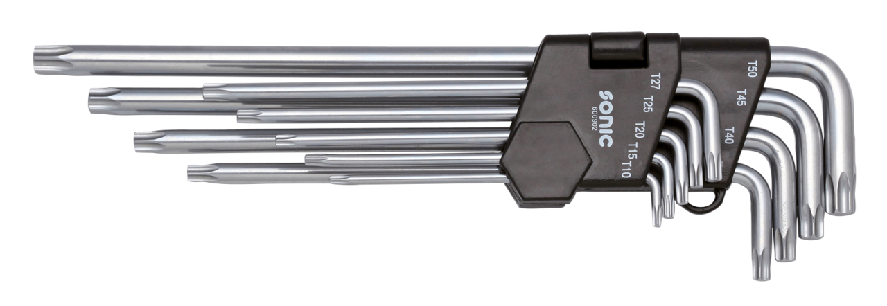 Set 9 chiavi Torx extra lunghe, T10, T15, T20, T25, T27, T30, T40, T45 e T50