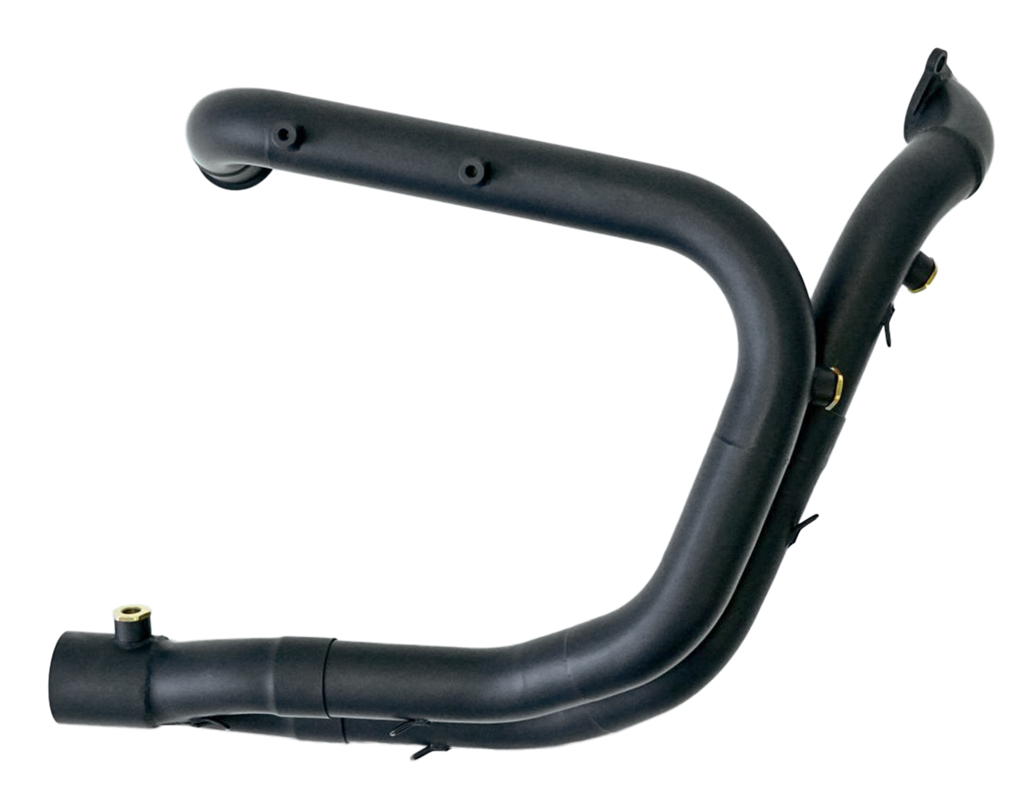 Set di collettori in acciaio inox che sostituiscono gli originali con convertitore catalitico per aumentare potenza e ridurre calore e peso.