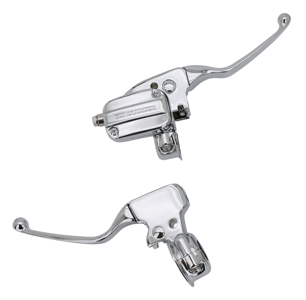 Comandi freno e frizione cromati o neri per tutti Touring 2008-2023. Il kit per modelli a cavo, include l’assemblaggio completo della leva frizione e la pompa freno anteriore da 15mm adatta alle pinze Brembo di serie per modelli con o senza ABS. In kit di pulsanti cromati peri modelli con Audio e Cruise Control è disponibile separatamente. I kit per modelli 2014 a oggi con frizione idraulica include una pompa frizione completa da 11/16″ di alesaggio, una pompa freno da 15mm e un kit di alloggiamento pulsanti.
