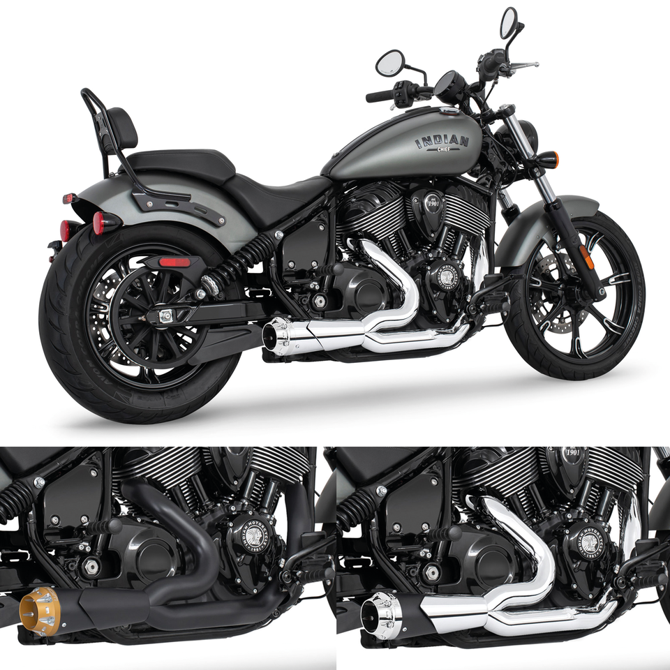 Per Indian Chief Bobber, Chief Classic, Chief Dark Horse, Chief Standard, Chief Vintage e Super Chief dal 2022 a oggi, Combat Shorty 2-in-1 cromato con tappo finale American Outlaw cromato