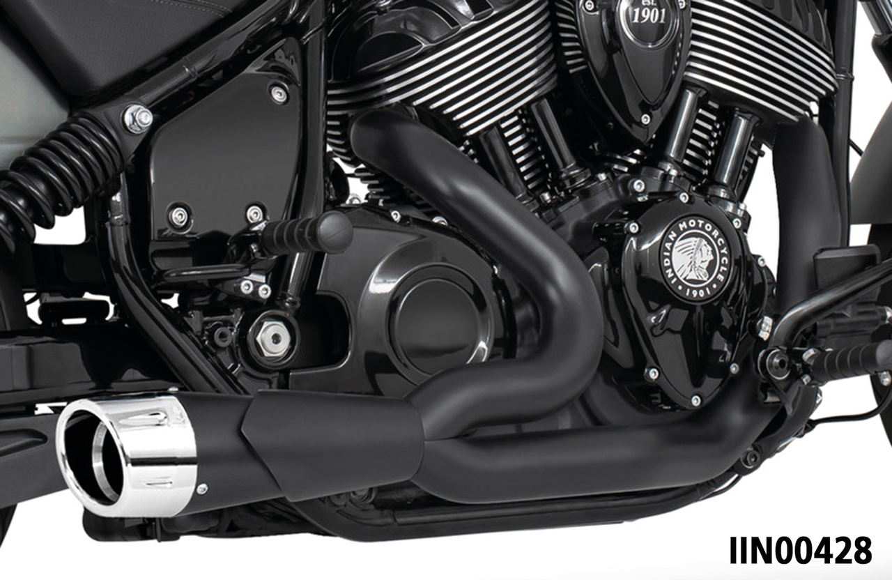 Per Indian Chief Bobber, Chief Classic, Chief Dark Horse, Chief Standard, Chief Vintage e Super Chief dal 2022 a oggi, Combat Shorty 2-in-1 nero con tappo finale Fluted cromato