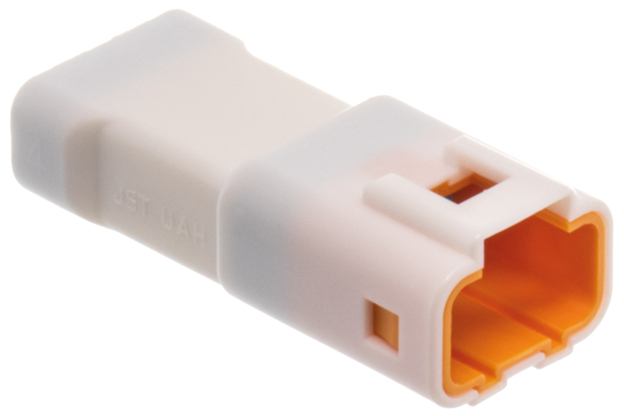 Questi sono i connettori più usati dai customizzatori, piccoli e impermeabili. I connettori sono venduti singolarmente, gli spinotti dei terminali dei connettori maschio e femmina sono venduti in confezione rivenditore da 100 pezzi. Tutti i connettori includono la guarnizione. I connettori JST sono progettati per fili da 22-gauge (0.33mm²) i quali permettono una corrente massima di 5Amp.