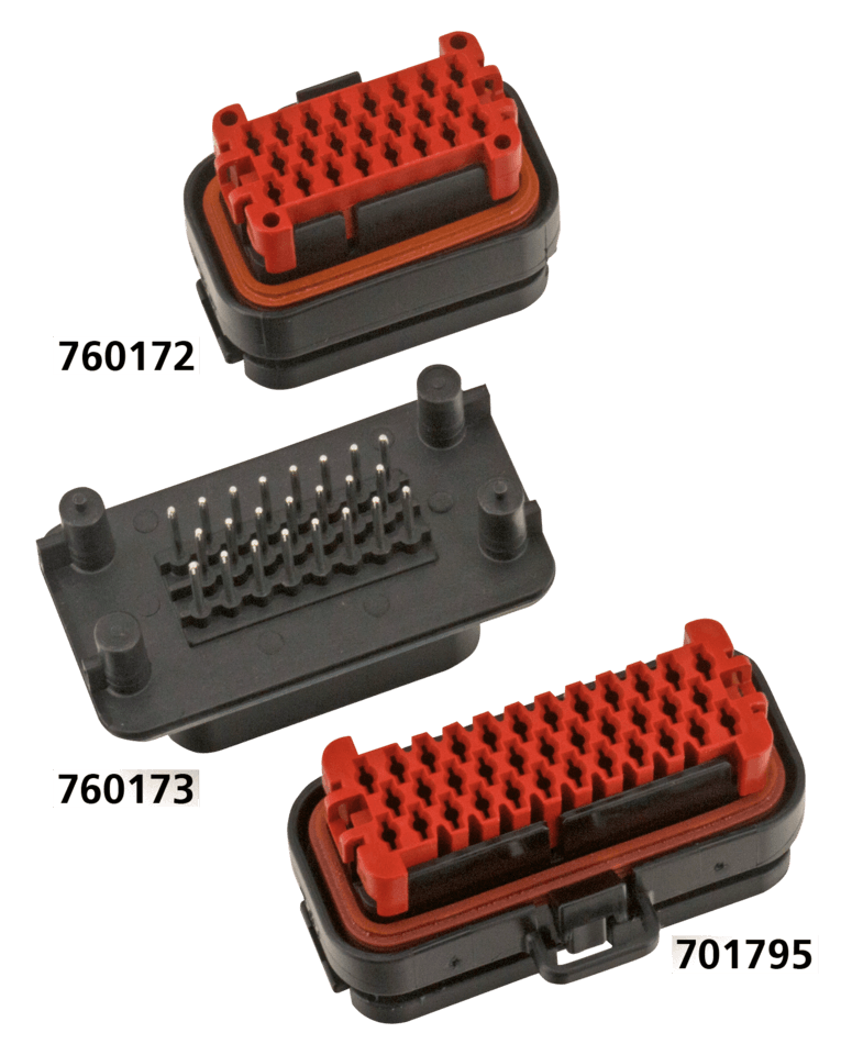 Il connettore a 23 posizioni lo trovate su molti modelli Touring, quello a 35 posizioni si trova sui modelli Ultra Classic e Touring equipaggiati con la radio OEM Harman Kardon e serve per assemblaggio di altoparlanti posteriori e interfacce CB. I terminali femmina corrispondenti per ZPN760172 e 701795 sono venduti in pacchi da 50.