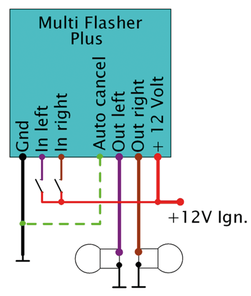Un controller di indicatori di direzione estremamente piccolo da utilizzare con interruttori a pulsante che si adattano a tutti i manubri. La velocità lampeggiante è indipendente dal carico e funziona con indicatori di direzione a Led, a bassa corrente o regolari. Dispone di funzione di auto cancellazione ed è protetta da cortocircuito. Misura 38x16x11mm.