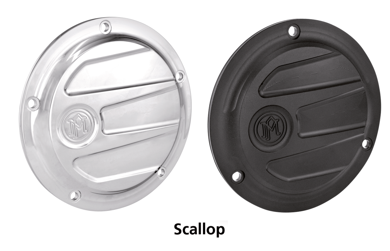 Coperture frizione in alluminio billet da Performance Machine disponibili cromate, Contrast Cut, Platinum Cut e Black Ops, la finitura caratteristica di PM con due tonalità di nero che si adatta al nero dei motori Harley di serie.