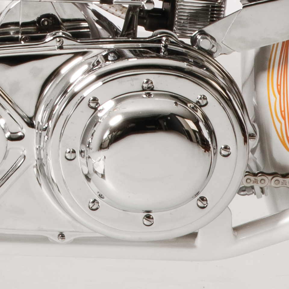 Ricambio per l’originale di tutti i Big Twin con carter primaria in lamiera dal 1936 al 1964, o per carter aftermarket in lamiera. E’ splendidamente cromato.