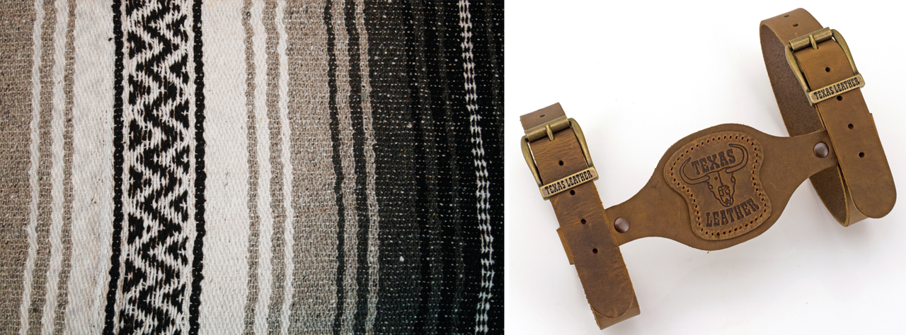 Coperte Made in Mexico note anche come serape o saltillos. Le coperte in stile Cozumel sono realizzate in acrilico con misto cotone e poliestere, misura 59″x84″ (150x213cm). Le coperte in stile Veracruz sono 100% acriliche e misurano 52″x80″ (132x203cm). Disponibili con o senza il supporto per coperta in vera pelle, che puoi legare al tuo manubrio, sissy bar o dove volete. I supporti per coperte hanno cinghie con lunghezza utilizzabile di 22″ (56cm) e possono essere utilizzati anche per sacchi a pelo.