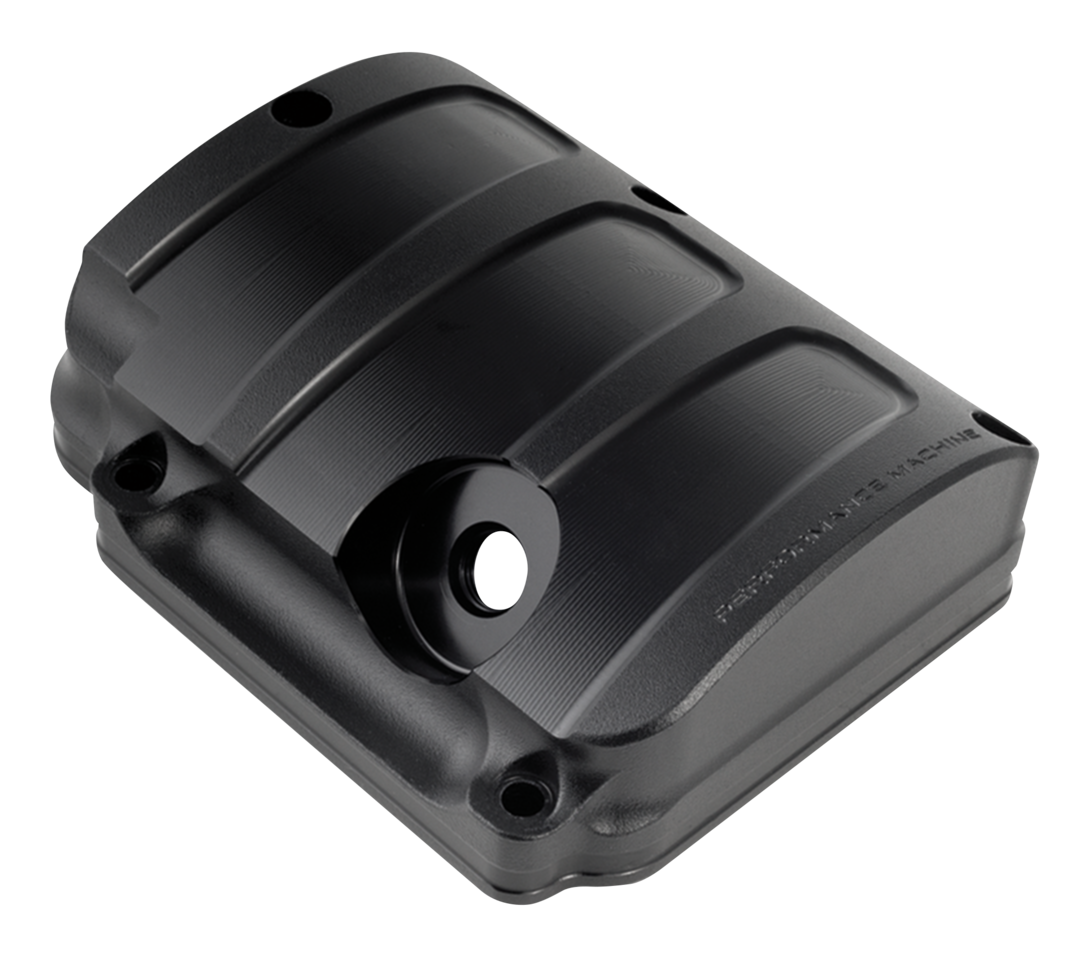 Coperchi della trasmissione superiore in alluminio billet Performance Machine nella tua scelta di cromo, Contrast Cut, Platinum Cut o Black Ops, che si abbina perfettamente al nero rughe su motori e trasmissioni.