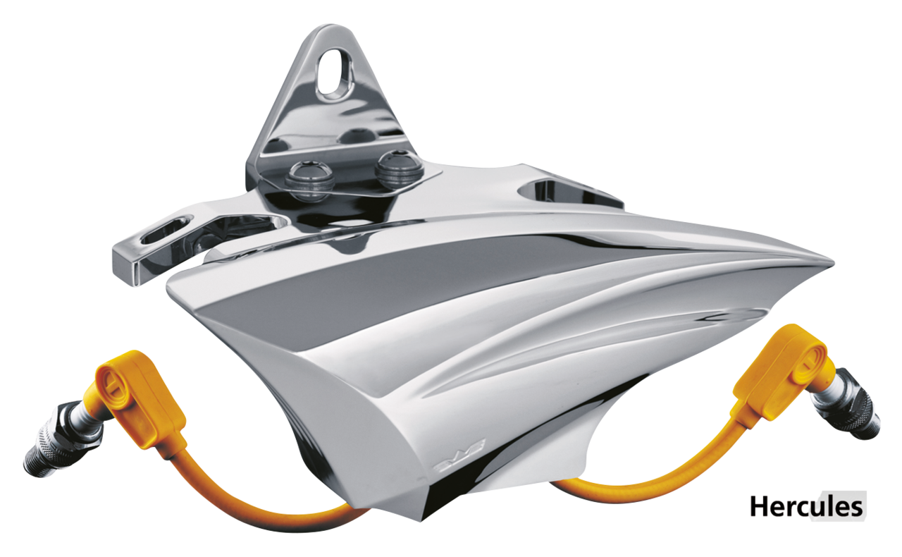 This relocation bracket is what you need when you want to install custom coil covers like the obsolete Rebuffini Hercules and Newton style on 2008-2011 Rocker Softail models.