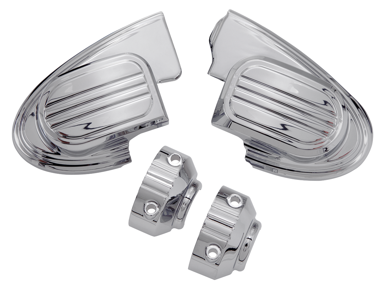 Finalmente un kit di coperture per pompa freno e frizione idraulica che milgliorano l’aspetto noioso di quelle di serie. Per modelli Harley-Davidson Touring 2014-2016 con 1″ comandi manubrio, frizione idraulica e specchietti montati a manubrio o sul Batwing.
